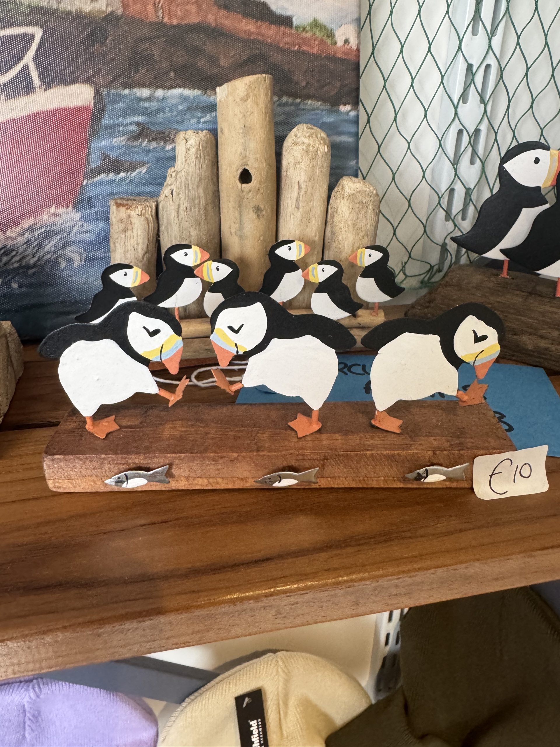 Set of 3 Colourful Puffins on a log